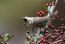 褐头凤鹛小型鸟类,体长12~13厘米。头顶有可竖立的红褐色羽冠,头侧、枕、颊、喉和下体白色,羽冠两侧黑色,头的两侧各有一条黑线,其下端与黑色颧纹末端相接,上端与从眼后伸出的一条黑线相连,…全部>>
