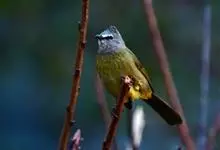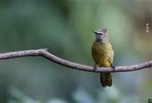 黄绿鹎,小型鸟类,体长19-22厘米。额至头顶暗褐具灰色羽缘,眼先黑色,其上面有一粗著的白纹从鼻后至眼,在黑色的头部极为醒目。上体橄榄绿褐色。颏、喉淡灰色或灰白色,胸灰褐色具橄榄黄色羽缘,…全部>>