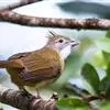 白喉冠鹎:体长20-25厘米。头顶红褐色,有长而细的羽冠、红褐色,头侧灰色。上体橄榄绿黄色,飞羽暗褐色,外翈茶黄色,尾下覆羽皮黄色。…全部>>