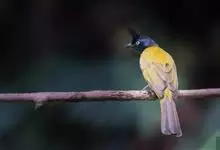 黑冠黄鹎:体长18-21厘米,是一种中等体型偏黄色鹎。整个头、颈、颏、喉黑色,头顶有显著直立的羽冠,黑色,上体褐橄榄黄绿色,下体橄榄黄色。虹膜偏红;嘴及脚黑色。…全部>>