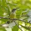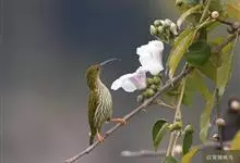 长嘴捕蛛鸟,小型鸟类,体长14-16厘米。嘴长而尖向下弯曲。上体橄榄绿色,眼先和短眉灰白色,两翅和尾暗褐色,外翈羽缘橄榄绿色,羽端灰褐色,自嘴基沿喉侧有一黑色纵纹。颏、喉灰白色,其余下体鲜黄色,…全部>>