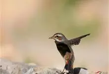 漠䳭是鹟科、䳭属小型鸟类,体长14-17厘米。雄鸟上体沙棕色,腰和尾上覆羽白色,两翅和尾黑色,尾基部白色,眼纹白色,眉纹以下整个脸和头侧以及颏、喉黑色,其余下体白色。雌鸟和雄鸟大致相似,但颏、喉白色,…全部>>
