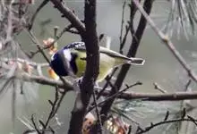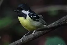 黄腹山雀是雀形目山雀科山雀属鸟类。虹膜褐色或暗褐色;嘴蓝黑色或灰蓝黑色;头、喉胸斑黑色,颊斑、颈后斑白色;上体蓝灰色,腰银白色;翼具两排白色点斑;下胸、腹鲜黄色;尾黑色,…全部>>