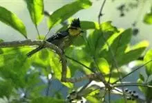 黄颊山雀是雀形目山雀科山雀属鸟类。雄鸟额、头顶和羽冠为具有光泽的黑色;额基、眼先、眉纹、脸颊和耳羽等头颈侧为鲜艳的明黄色;贯眼纹黑色;后颈亦具一黄斑;上体灰黄绿色,羽缘黑色;尾羽黑色具蓝灰色羽缘,…全部>>