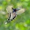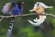 台湾蓝鹊:体长64至65厘米,翼展18至21厘米,尾长约40厘米,尾羽长占了总体长的三分之二。头、脸、颈、喉、胸都是黑色,黄色的眼珠包围黑色的瞳孔,鲜红色的鸟喙、双脚,…全部>>