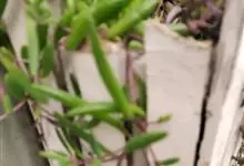 紫玄月是菊科厚敦菊属多年生肉质草本植物。蔓长30-60厘米;茎紫色;叶对生或互生茎上肉质,叶片细圆柱形,中间粗两端细稍弯曲;花序着生于叶腋,头状花序,舌状花黄色,管状花黄色;花期全年。…全部>>