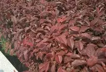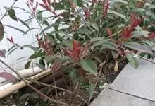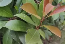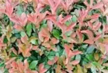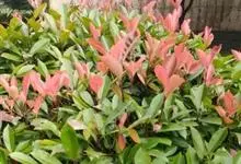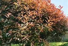 红叶石楠 是蔷薇科,石楠属杂交种,为常绿小乔木或灌木,乔木高可达5米、灌木高可达2米。叶片革质,长圆形至倒卵状、披针形,叶端渐尖,叶基楔形,叶缘有带腺的锯齿,花多而密,复伞房花序,花白色,梨果黄红色,…全部>>