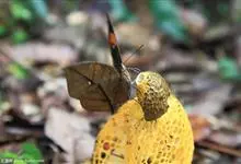 枯叶蛱蝶,又名木叶蝶、树叶蝶等,属于蛱蝶科。翅正面黑褐色,具深蓝色光泽,前翅顶角尖出,顶区有1枚小白点,中部有1条倾斜的橙色斑带,从前缘延伸至Cu室外缘,u室中部有1枚黑色圆斑,…全部>>