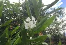 姜花又名野姜花。是姜科姜花属的多年生草本植物,茎高1-2米;叶片长圆状披针形或披针形,叶面光滑,叶背被短柔毛;穗状花序顶生,椭圆形,花芬芳,白色;蒴果卵状三棱形,微黄绿色;种子鲜红色,具橘红色的假种皮。…全部>>