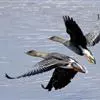 斑头雁是雁形目鸭科雁属鸟类,又称白头雁、黑纹头雁。通体大都灰褐色,头和颈侧白色,头顶有两道黑色带斑;虹膜暗棕色,嘴橙黄色,嘴甲黑色,脚和趾橙黄色;背部淡灰褐色,羽端缀有棕色,形成鳞状斑;颏、喉污白色,…全部>>