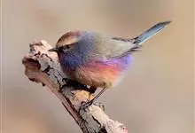 花彩雀莺:体长9-12厘米,是一种毛茸茸偏紫色的雀莺。顶冠棕色,眉纹白。尾长,羽毛松软。前额有一宽阔的眉纹淡黄色,头顶栗色或棕红色,有的具紫蓝色光泽。背灰色,腰和尾上覆羽辉紫蓝色,飞羽灰褐色。…全部>>