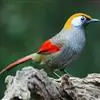 赤尾噪鹛中型鸟类,体长24~28厘米。头顶至后颈红棕色,两翅和尾鲜红色,眼先、眉纹、颊、颏和喉黑色,眼后有一灰色块斑。其余上下体羽大都暗灰或橄榄灰色。特征极明显,特别是通过鲜红色的头顶、翅和尾。…全部>>