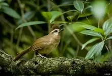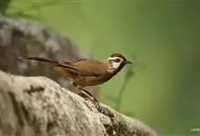 白颊噪鹛是雀形目噪鹛科噪鹛属鸟类,又称土画眉、小画眉、小噪鹃。成鸟额至头顶栗褐色,长眉纹、眼先和颊纹棕白色,眼后至耳羽深褐色,…全部>>