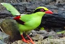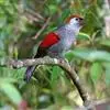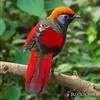 赤尾噪鹛中型鸟类,体长24~28厘米。头顶至后颈红棕色,两翅和尾鲜红色,眼先、眉纹、颊、颏和喉黑色,眼后有一灰色块斑。其余上下体羽大都暗灰或橄榄灰色。特征极明显,特别是通过鲜红色的头顶、翅和尾。…全部>>