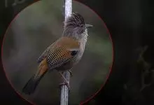 栗额斑翅鹛是噪眉科、斑翅鹛属中型鸟类,体长20-23厘米。头顶具浓密的羽冠,前额栗棕色,头顶灰褐色。上体棕褐色,两翅棕褐色具黑色横斑,翅基外缘有一黑斑,尾呈凸状,棕褐色具黑色横斑。下体棕褐色,…全部>>