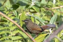 纯色噪鹛是鹟科、噪鹛属中型鸟类,体长22-24厘米。上下体羽大都呈橄榄褐色或棕褐色,各羽均具黑色羽缘,在上下体形成密集的鳞状斑。外侧飞羽外硼基部草黄色,…全部>>
