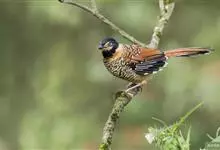 白颊噪鹛是雀形目噪鹛科噪鹛属鸟类,又称土画眉、小画眉、小噪鹃。成鸟额至头顶栗褐色,长眉纹、眼先和颊纹棕白色,眼后至耳羽深褐色,…全部>>
