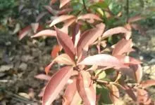 红叶石楠 是蔷薇科,石楠属杂交种,为常绿小乔木或灌木,乔木高可达5米、灌木高可达2米。叶片革质,长圆形至倒卵状、披针形,叶端渐尖,叶基楔形,叶缘有带腺的锯齿,花多而密,复伞房花序,花白色,梨果黄红色,…全部>>