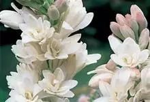 晚香玉是石蒜科、晚香玉属多年生草本植物。晚香玉茎直立,不分枝;基生叶片簇生,线形,顶端尖,深绿色,向上渐小呈苞片状;穗状花序顶生,花乳白色,浓香,长圆状披针形;蒴果卵球形;种子多数,稍扁;花期7-9月。…全部>>