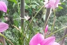 小韭兰学名韭菜莲又名风雨花、菖蒲莲、红玉帘和旱水仙,多年生草本,鳞茎卵球形,基生叶常数枚簇生,线形,扁平,花单生于花茎顶端,下有佛焰苞状总苞,花玫瑰红色或粉红色,蒴果近球形,种子黑色,花期夏秋。韭莲…全部>>