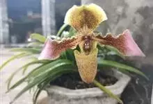 兜兰是兰科兜兰属的多年生草本植物。根茎粗状,直径3~4毫米,有很多须根;叶基生,叶片肉质增厚,排成紧密2列,叶片呈长圆形,表面有极短柔毛;总状花序,粉白色,花葶直立或倾斜,深绿色或褐色,花瓣大,呈唇形,…全部>>