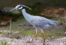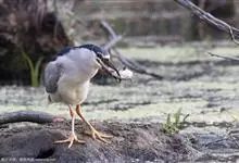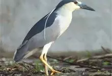 夜鹭是中型涉禽,体长46-60厘米。体较粗胖,颈较短;嘴尖细,微向下曲,黑色;胫裸出部分较少,脚和趾黄色;头顶至背黑绿色而具金属光泽;上体余部灰色;下体白色;枕部披有2-3枚长带状白色饰羽,下垂至背上,…全部>>