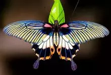 美凤蝶又名多型蓝凤蝶、大凤蝶,是鳞目凤蝶科凤蝶属动物。美凤蝶雄蝶无尾突,翅黑色,正面各翅室中部有深色条纹,分布蓝色鳞片,反面前后翅基部有红斑,后翅臀角有环状红斑。雌蝶具多型,前翅浅灰色,外缘和翅脉黑色,…全部>>