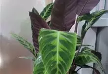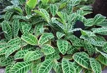 绒叶肖竹芋 Lindl.)是竹芋科,肖竹芋属多年生中等大草本植物,株高可达1米。叶片长圆状披针形,不等侧,叶面深绿,有黄绿色的条纹,天鹅绒般,叶背幼时浅灰绿色,老时淡紫红色,头状花序,花冠紫堇色或白色,…全部>>