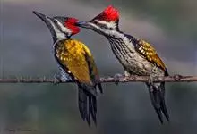 三趾啄木鸟,是啄木鸟科、啄木鸟属的小型鸟类,体长20-23厘米,雄鸟头顶金黄色,雌鸟黑色而具白色斑点。眼至耳覆羽黑色,眼后有一条白色纵纹,颊纹白色,颚纹黑色,甚为醒目。枕和后颈黑色,…全部>>