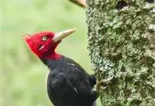 白腹黑啄木鸟,是啄木鸟科、黑啄木鸟属的中型鸟类,体长43-46厘米,头顶具长的红色羽冠,颚纹亦为红色,其余头、颈、胸和上体黑色,腰和腹白色,飞翔时白色腋羽和翅下覆羽亦明显可见。雌鸟头顶黑色,…全部>>