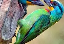 绿拟啄木鸟为鴷形目,须科,拟啄木属的一种。形较大拟啄木鸟略小,体长约260mm。头、颈及胸浅褐而具淡黄白色条纹;喉几为淡黄白色;身体余部草绿色。虹膜棕褐色,眼周裸露部黄色;嘴峰角黄色;跗跖和趾角黄…全部>>