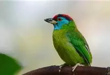 蓝喉拟啄木鸟,是须鴷科、拟啄木鸟属的鸟类。蓝喉拟啄木鸟为小型鸟类,体长20-23厘米。前额至头顶鲜红色,其上有一宽阔的黑色横带,将此红色分为前后二块;头侧、颏、喉蓝色,下喉两侧各具一红色点斑。…全部>>