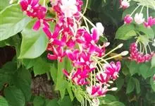 使君子 Jongkind)是使君子科、使君子属攀援灌木,叶对生,椭圆形,两面均被灰白色柔毛。穗状花序,倒挂下垂。花期夏秋。果有五棱,熟时黑色,种子白色。分布于印度、缅甸、菲律宾和中国。喜温润,深根性,…全部>>