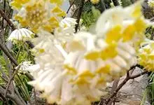 结香是瑞香科结香属落叶灌木。又名岩泽兰、三桠皮、三叉树、蒙花、山棉皮等。高约0.7-1.5米,小枝粗壮,褐色,常作三叉分枝,幼枝常被短柔毛;叶在花前凋落,长圆形,披针形至倒披针形,先端短尖,…全部>>