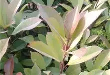 石楠 Kalkman),是蔷薇科石楠属的常绿乔木,高5~12米,株型紧凑,树冠圆球形。树枝为褐灰色;鳞片为褐色,没有毛;叶片革质,长椭圆至侧卵状椭圆形,有锯齿,新叶红色光亮。复伞房花序,白色小花,…全部>>