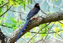 红嘴蓝鹊,别名山鹊、长尾鹊,是鸦科蓝鹊属的一种观赏性较强的大型鸣禽。该物种为体长54~65cm,头、颈、喉和胸黑色,头顶至后颈有一块白色至淡蓝白色或紫灰色块斑,其余上体紫蓝灰色或淡蓝灰褐色。尾长呈凸状,…全部>>