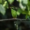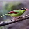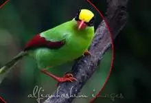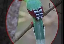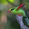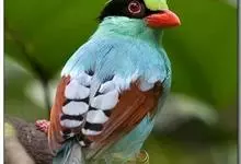 蓝绿鹊:中型鸟类,共有5个亚种。体长36-38厘米。尾长,嘴、脚红色。通体羽色主要为草绿色,宽阔的黑色贯眼纹向后延伸到后颈,在绿色的头侧极为醒目。两翅栗红色,内侧飞羽具黑色次端斑和白色尖端。尾绿色,…全部>>