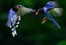 台湾蓝鹊:体长64至65厘米,翼展18至21厘米,尾长约40厘米,尾羽长占了总体长的三分之二。头、脸、颈、喉、胸都是黑色,黄色的眼珠包围黑色的瞳孔,鲜红色的鸟喙、双脚,…全部>>