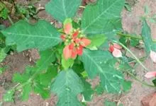 猩猩草:常绿或半常绿灌木,盆栽时株高0.5米-2米,在亚热带地区可长到6米以上。茎直立而光滑,单叶互生,卵状椭圆形至阔披针形,具不规则的深缺刻。长10-15厘米。花小,有蜜腺,排列成密集的伞房花序。…全部>>