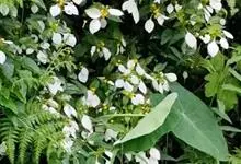 白纸扇是茜草科玉叶金花属,藤状攀援灌木,枝和小枝褐色,叶薄纸质,披针状椭圆形,两面有稀疏柔毛。花序顶生,聚伞花序,花黄色。花期5~1 0月。有些花的一枚萼片扩大成叶状,白色。全部>>