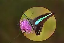 青带凤蝶Graphium sarpedon ,又名青凤蝶,是最普遍的中型凤蝶,飞行速度很快。青带凤蝶的翅膀中央有许多浅蓝色的斑点,很整齐地排列成一条直线。这些斑点由上而下逐渐变大,就像一条青色的带子。全部>>
