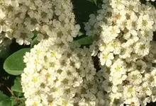 三裂绣线菊是灌木,高1-2米;小枝细瘦,开展,叶片近圆形,伞形花序具花15-30朵;苞片线形或倒披针形,萼筒钟状,花瓣宽倒卵形,蓇葖果开张,花柱顶生稍倾斜,具直立萼片。花期5-6月,果期7-8月。…全部>>