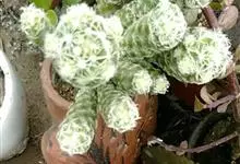 玉翁是仙人掌科、乳突球属多年生草本多浆植物。植株幼时呈扁球形或球形,以后长成圆筒状,直径10厘米左右,淡绿色。疣状突起呈圆锥形,新刺座的白色绵毛很短,疣突腋部则有20根白色长绵毛,绵毛长4厘米左右,…全部>>