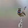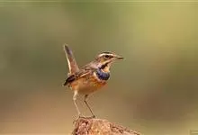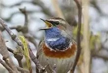 蓝点颏亦称“蓝喉歌鸲”,通称蓝靛颏儿。身体大小和麻雀相似,体长12-13厘米,体重17-18克。头部、上体主要为土褐色。眉纹白色。尾羽黑褐色,基部栗红色。颏部、喉部辉蓝色,下面有黑色横纹。下体白色。…全部>>