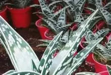 翠花掌是百合科、芦荟属植物。多年生肉质植物。株高20~30厘米具短茎,叶片三角剑形,肥厚多肉。表面下凹呈“V”形。叶长约12厘米,宽3-5厘米,有横向排列不规则的银白色或灰白色斑纹。松散的总状花序,…全部>>