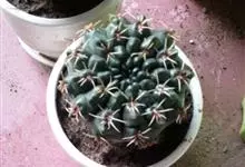 绯花玉 Speg.)是仙人掌科、裸萼球属多肉植物,植株呈扁球形,表皮墨绿色,刺针状,每个刺座有5枚灰色周刺,花生于球体顶端,夏季开花,花色有白、粉红、深红等。果实纺锤形,深灰绿色,种子黑色。…全部>>