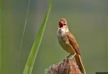 东方大苇莺是莺科苇莺属的一种动物,体长18-19厘米,体重22-29克。体型略大的褐色苇莺。具显著的皮黄色眉纹。上体呈橄榄褐色。下体乳黄色。第1枚初级飞羽长度不超过初级覆羽。虹膜褐色;上嘴褐色,…全部>>