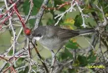 白喉林莺:体长10-13厘米,是一种类体型略小的莺鸟。喉白,上体灰褐或沙褐色,头顶较灰,贯眼纹黑褐或暗褐色。下体污白。耳羽深黑灰,胸侧及两胁沾皮黄色、褐色或淡粉红色。外侧尾羽羽缘白色。…全部>>