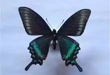 绿带翠凤蝶,又名深山凤蝶,为凤蝶科凤蝶属下的一种。分布于韩国、日本、中国台湾、中国大陆等地。翅黑色,满布金绿色鳞片。前翅亚缘具黄绿色横带纹。后翅外缘有6个略呈新月形的红斑,…全部>>