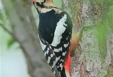 大斑啄木鸟隶属鸟纲鴷形目啄木鸟科。雄鸟头顶黑色,枕部红色,眼先、颊部和耳羽白色,颈部污白色,下嘴基部至后颈有1道黑色条纹并与从颈侧延伸到胸侧的黑色条带相连,背和两翼黑色,肩部具1个大的白色斑块,…全部>>